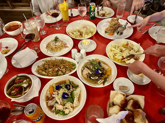 夕食はいろんなものをいっぱい頼んでみんなでシェアする形式で毎晩パーティー。