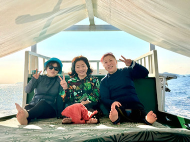 リゾートからジュゴンエリアまでは約1.5時間とちょっと長旅ですが海は穏やかで船は揺れないのでのんびりくつろげます。 ヤシの実売りの兄弟もいつもやって来ますよー。